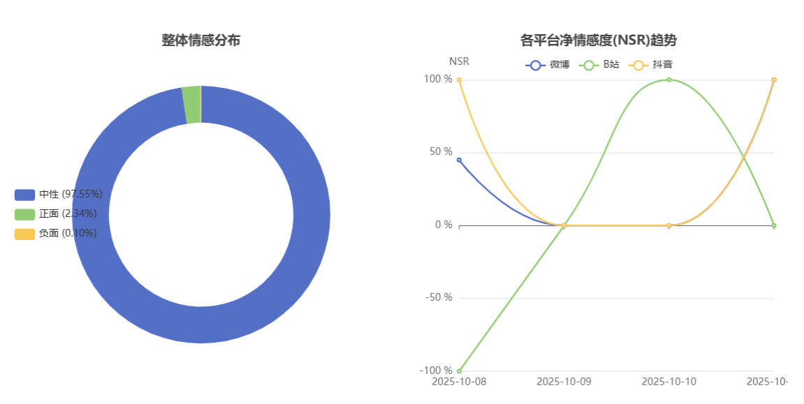 - 微博 情感有所波动,但在关键节点同样呈现正面趋势,如10月8日NSR为 45%[36]。