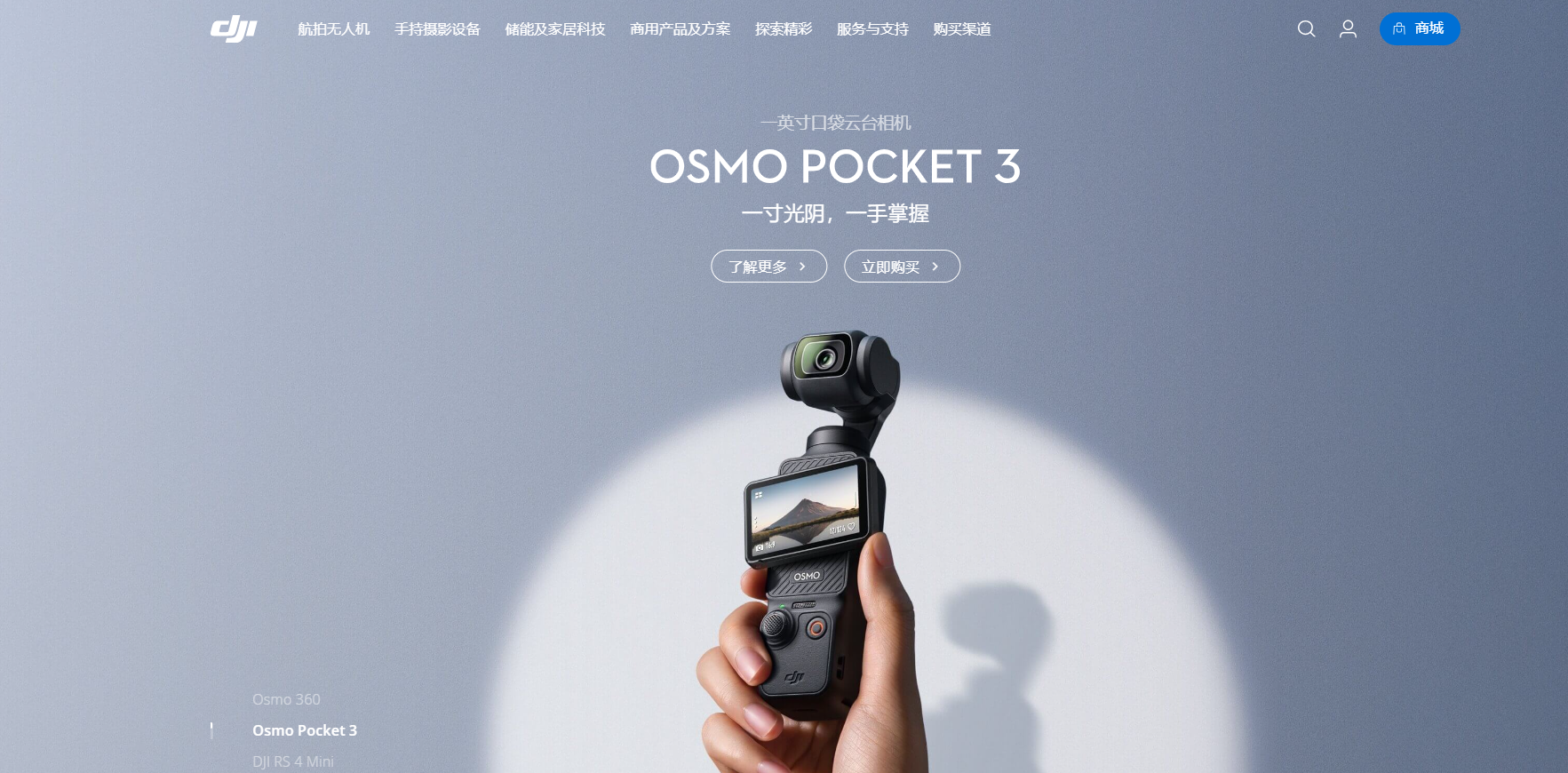 - Osmo Action系列:运动相机,以其出色的图像稳定技术和耐用性,直接与GoPro等品牌竞争[32]。