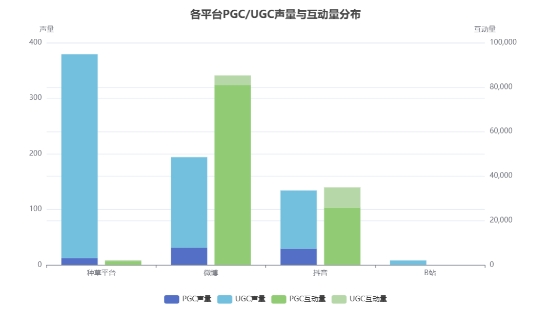 - B 站仅产生 8 条声量(互动量仅 9 次),几乎未形成有效触达,后续可加大在B站的推广种草。