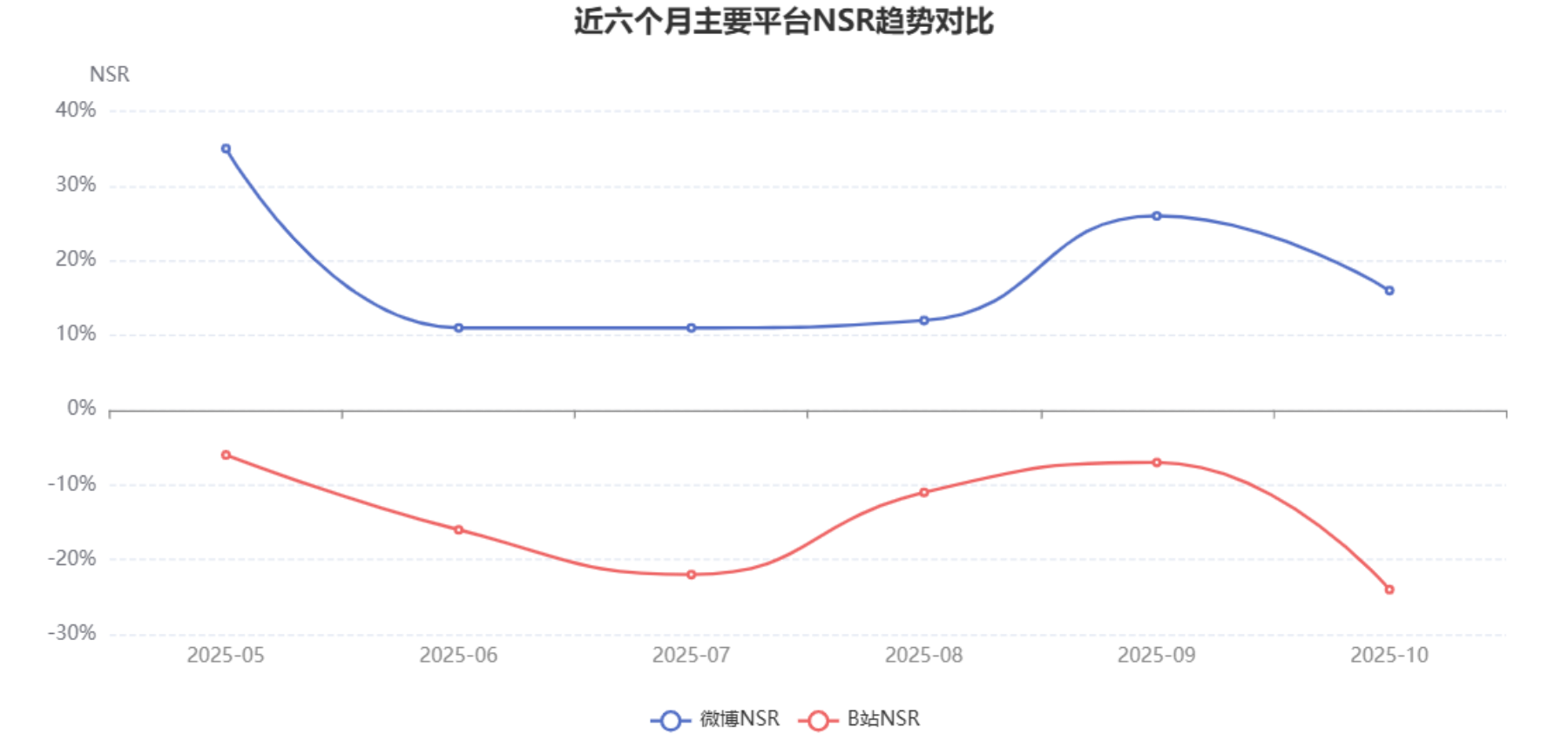 数据显示,微博贡献了最高的月均声量,是游戏信息扩散的主要渠道。然而,Bilibili的月均互动量遥遥领先,是微博的近4倍,表明B站用户参与度极高,是核心粉丝的聚集地。值得注意的是,Bilibili的NSR持续为负(-13.43%),与微博的正向情感(26.14%)形成鲜明对比,揭示了核心玩家社群中潜藏的显著不满情绪。