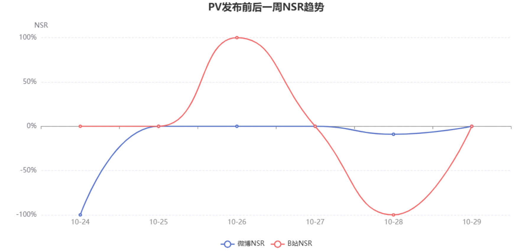 PV发布当天(10月28日),社媒情感出现了剧烈波动。Bilibili平台的NSR骤降至 -100% ,微博NSR也跌至 -9% [33,32] 。这种在高互动量下NSR急剧转负的现象,并非源于对产品质量的不满,而是PV内容本身带来的强烈情感冲击。PV中描绘的多个角色悲惨结局,如黑塔被夺舍、镜流化身大君、列车组全灭等,直接触动了玩家内心深处的情感,引发了大量担忧、震惊甚至“刀傻了”的负面情绪表达 [20,26] 。这种因对剧情和角色高度投入而产生的负面情感,恰恰是PV情感营销成功的体现,形成了“越虐越看,越看越讨论”的独特传播现象。