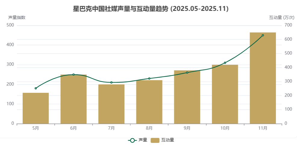 - 11月高峰 :声量和互动量达到顶峰,核心驱动事件是“宣布与博裕资本达成战略合作” [34,38] 。这一重磅商业新闻不仅在财经圈层刷屏,也扩散至大众消费领域,引发了关于“星巴克中国卖身”、“未来是否会更便宜”、“星巴克国产化”等热议,互动量激增。