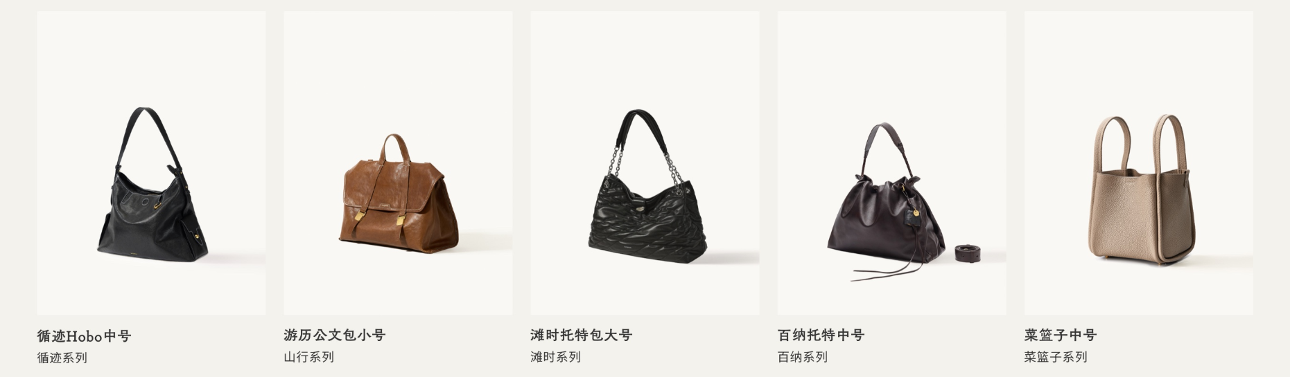 山下有松的产品线以包袋为核心,每个系列都体现了品牌对东方美学的独特诠释和对实用性的极致追求。主要产品线包括: