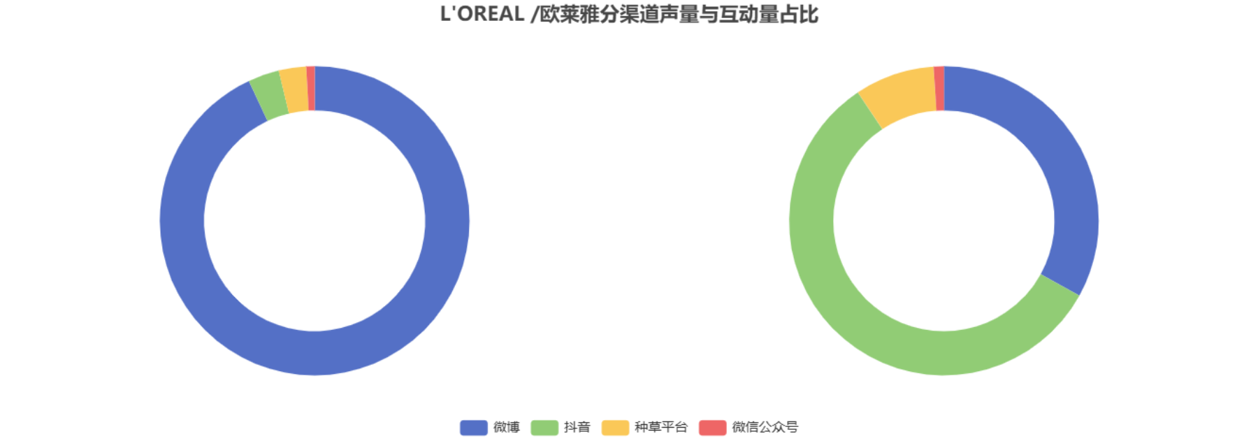 L'OREAL /欧莱雅在不同社媒渠道的声量和互动量分布呈现出显著差异,这反映了品牌在各平台的侧重策略和各平台的独特用户生态。