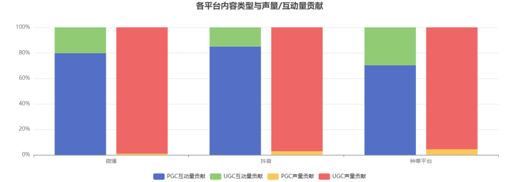 - PGC内容主导互动: 品牌官方及KOL创作的专业内容(PGC)虽声量占比较小,却贡献了绝大部分的互动量,凸显了高质量内容在社媒营销中的决定性作用。