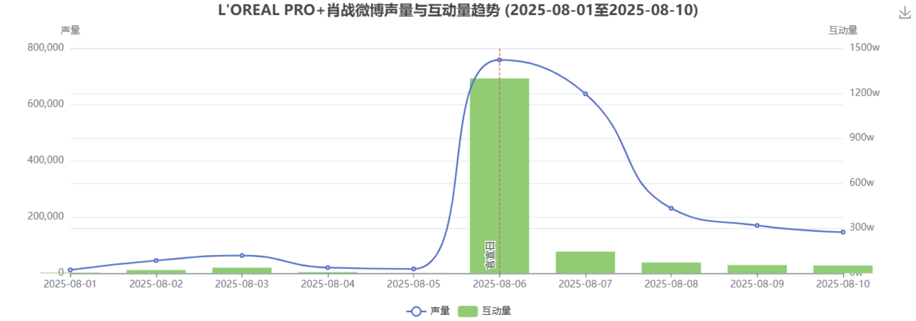 此次代言活动选择在微博平台进行集中爆发,充分利用了其强大的社交属性和粉丝效应。数据显示,在 2025年8月6日 官宣当天,相关声量和互动量均呈现爆炸式增长,并在此后数日保持了极高的热度。