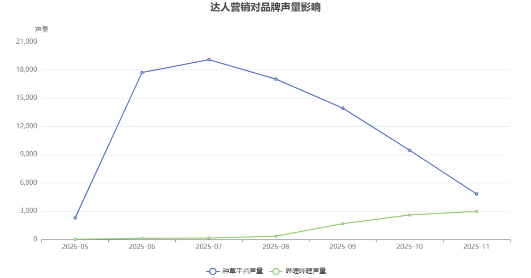 达人营销在提升品牌声量和用户互动方面发挥了积极作用。通过对种草平台和哔哩哔哩数据的分析,可以更清晰地评估达人营销的具体影响。根据数据显示,种草平台和哔哩哔哩的月度声量趋势在特定月份都出现了声量高峰,这与达人营销活动的集中爆发密切相关。 [23,25] 例如,种草平台在7月份的声量达到峰值,可能与夏季零食消费旺季以及达人集中推广螺蛳粉、鳕鱼肠等产品有关。哔哩哔哩平台在11月的声量达到峰值,可能与双十一购物节的达人推广活动有关。同样,互动量趋势也与达人营销活动呈现正相关。种草平台在8月份的互动量达到峰值,可能与达人发布高质量内容或少量爆款内容有关。哔哩哔哩平台在11月的互动量达到峰值,可能与双十一购物节期间达人推广和用户分享热情被激发有关。 [24,26] 这些数据表明,达人营销能够有效提升品牌在社交媒体上的曝光度和用户讨论度。