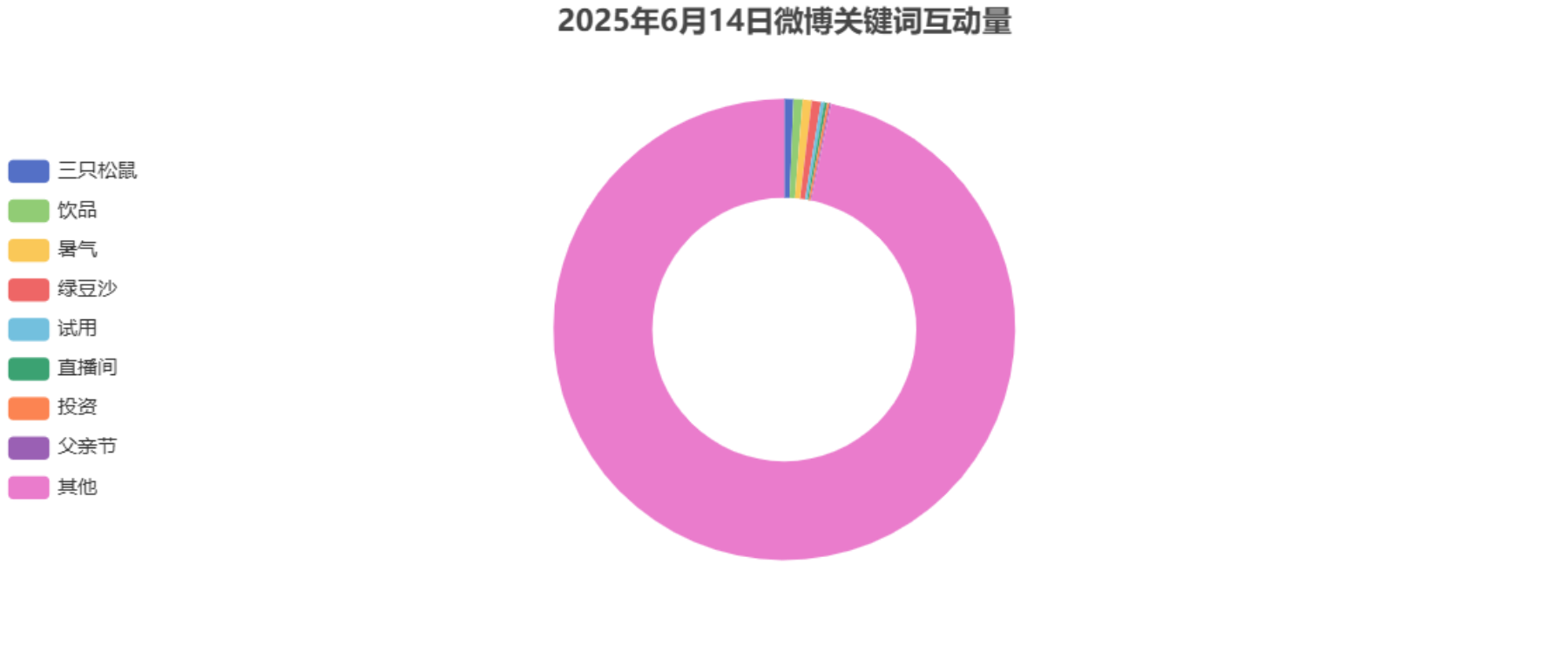 2025年6月14日,三只松鼠在微博平台的互动量出现异常峰值,达到146,479。 [16] 为了探究这一峰值背后的原因,我们对当天与三只松鼠相关的热门话题、关键词以及营销活动进行了分析。
