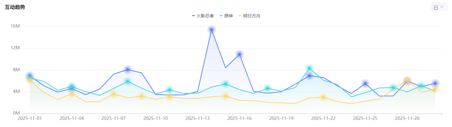 2025年11月二次元游戏社媒互动市场呈现出 “强者恒强,新秀崛起” 的态势。