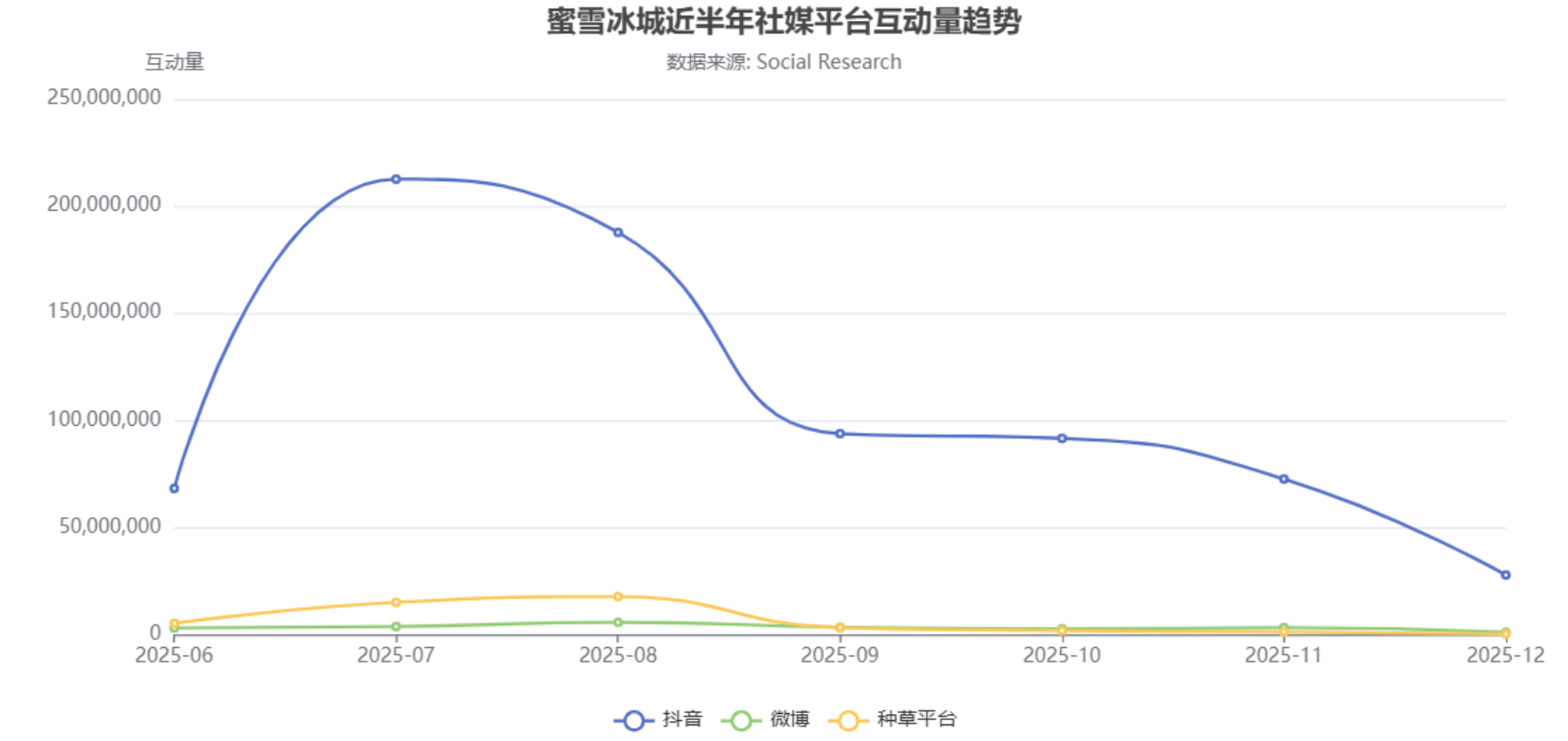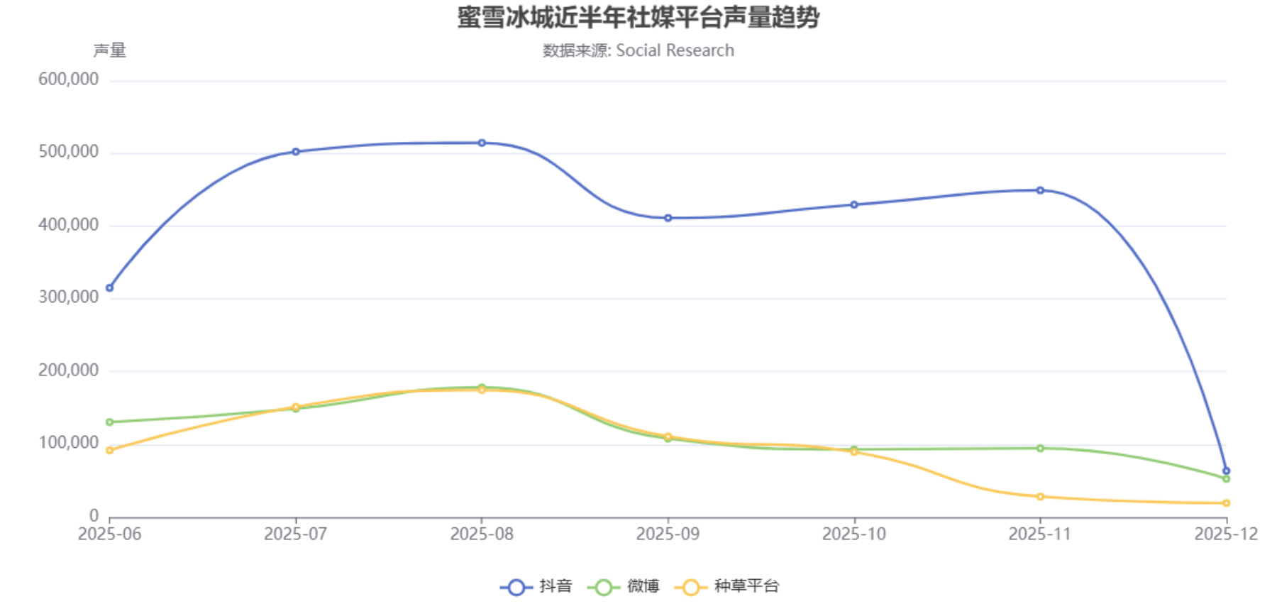 在2025年6月10日至12月10日期间,蜜雪冰城在抖音、微博和种草平台三大社交媒体上的表现各具特色。总体来看,品牌在各平台均保持了较高的活跃度,但用户的情感反馈和互动模式存在显著差异。