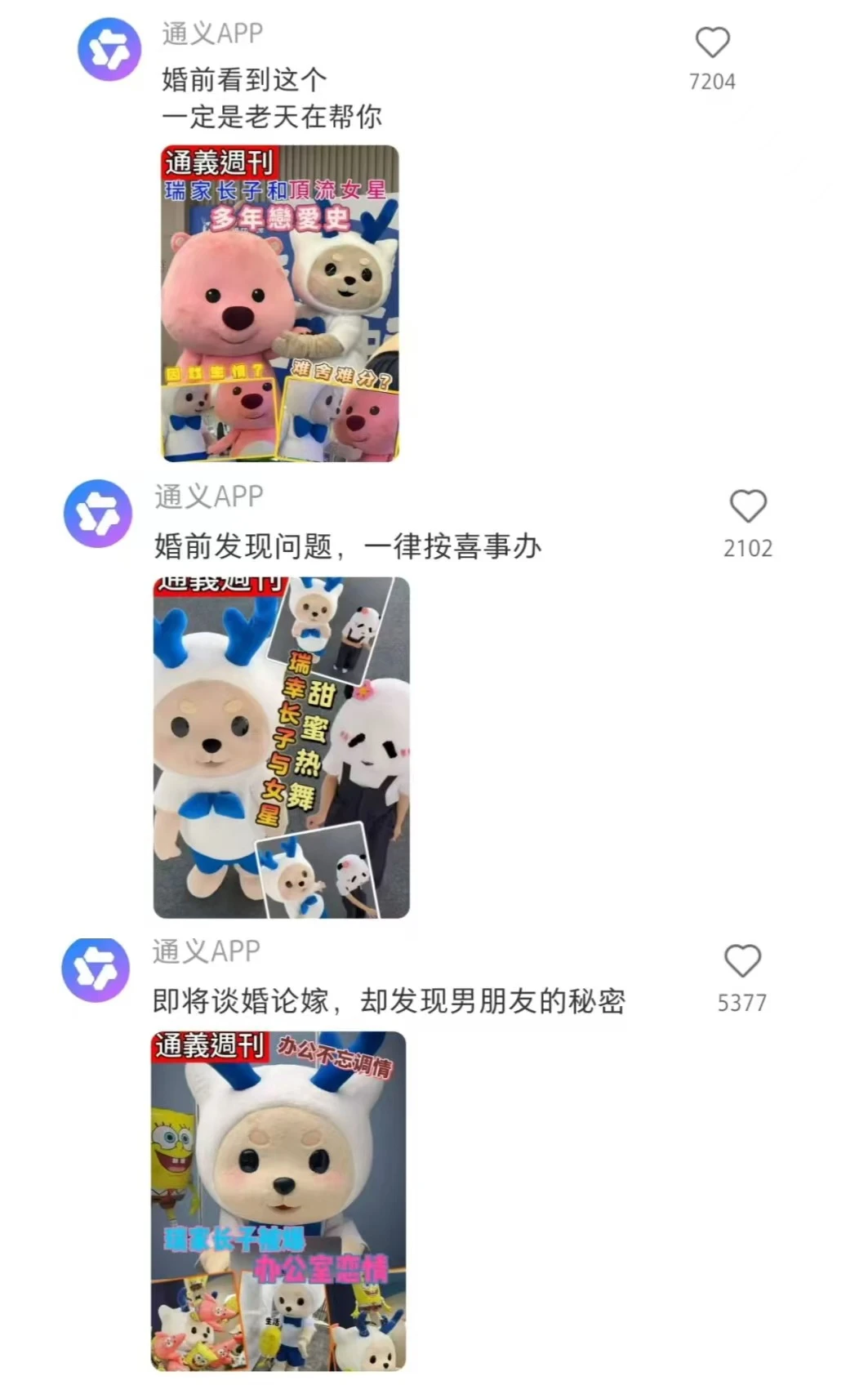 - 用户参与 - “玩梗”文化的极致运用: 活动巧妙地利用了“多儿”的“疯批”人设,并鼓励用户和其它品牌(如通义APP的“抢婚”互动)参与到“玩梗”和二次创作中,将用户从观众转变为剧情的参与者和共创者。