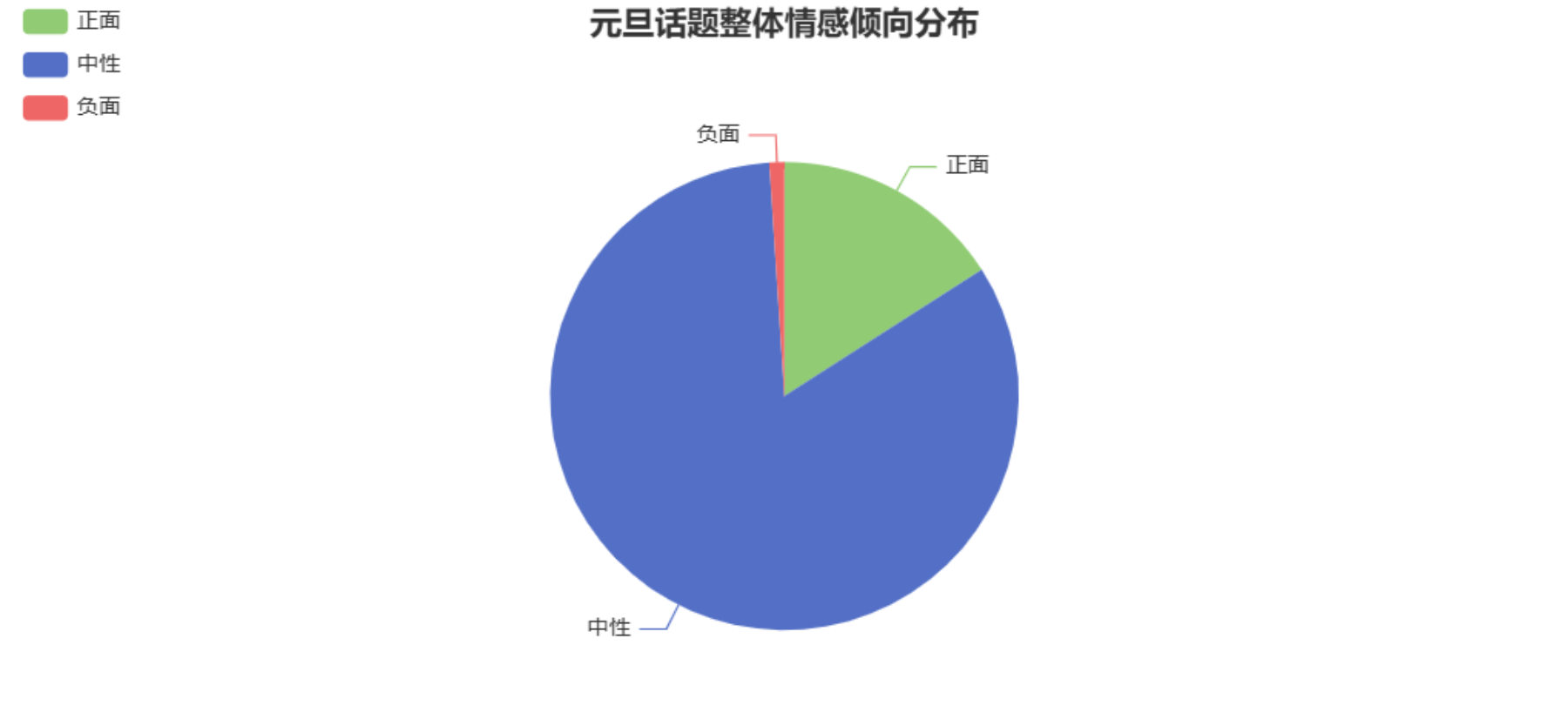 元旦假期期间,社交媒体的整体情感基调是积极向上的。数据显示,中性情感内容占比最高(83.1%),主要为信息分享与计划讨论;正面情感内容紧随其后(15.9%),用户大量发布表达喜悦和期待的内容;而负面情感内容占比极低(1.0%),显示出和谐的节日氛围。 [6]
