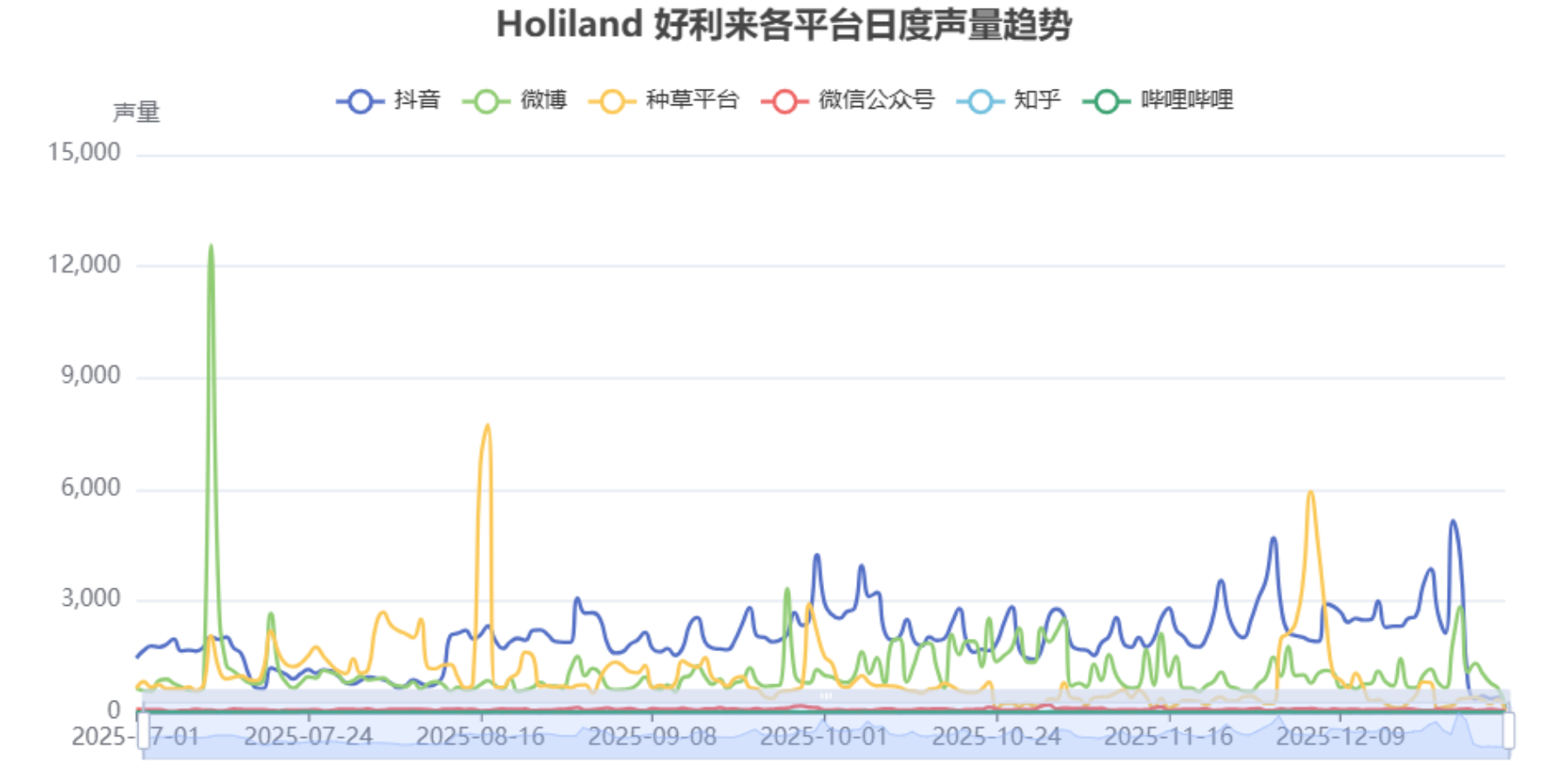 - 11月-12月: “抖音小火人”联名活动和圣诞季营销共同推动了抖音和种草平台在年底达到声量顶峰,尤其在12月初和圣诞节前夕,用户的分享和购买意愿被充分激发 [23,24,15] 。