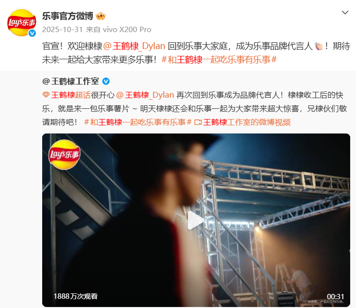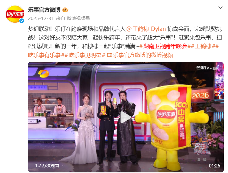 2025年下半年,乐事策划并执行了多个大型营销活动,以明星代言和节日营销为两大主轴,有效覆盖了微博、抖音等主流社交平台。