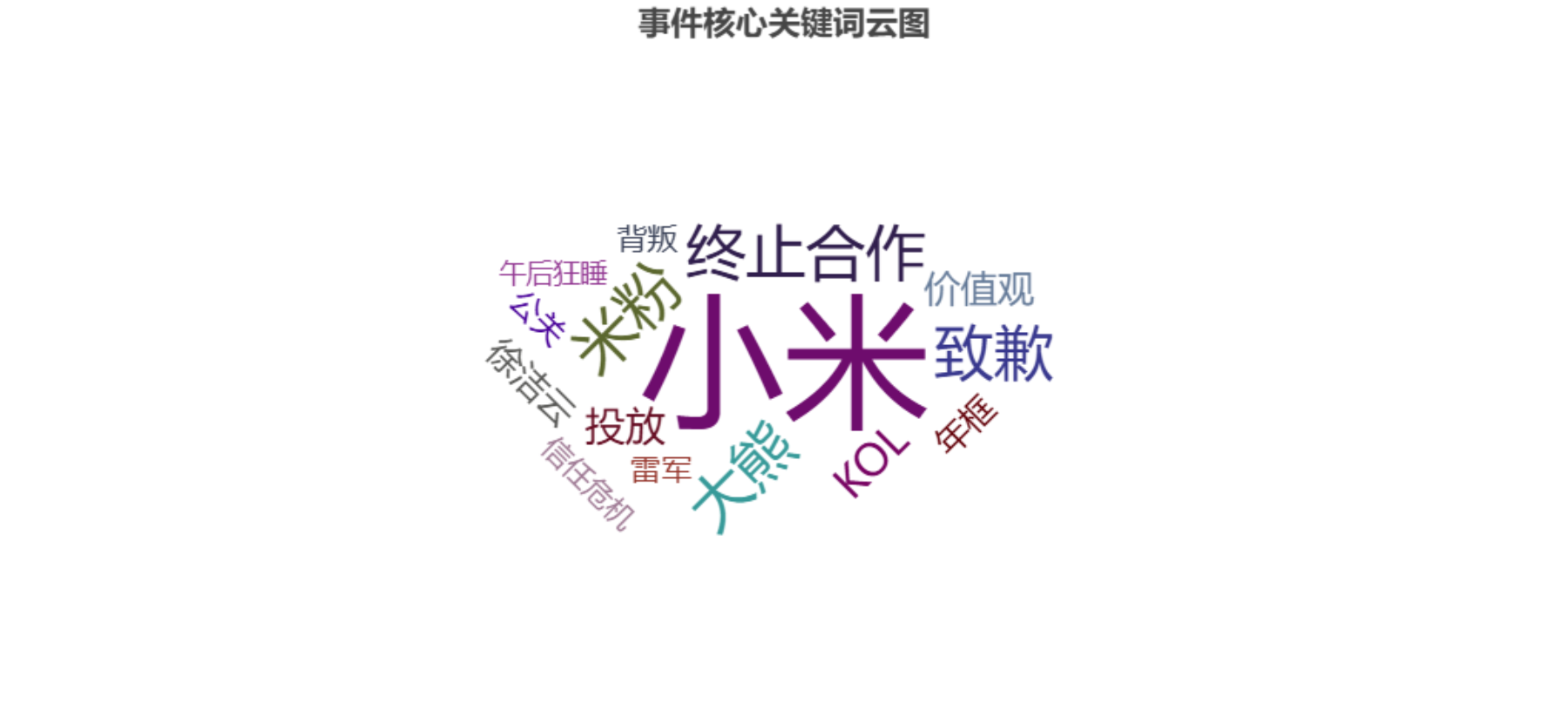 通过对高互动内容的分析,可以发现用户讨论的焦点高度集中。微博上的热门话题,如 “小米立即终止与相关KOL合作” 、 “小米徐洁云致歉” 等,直接反映了事件的核心脉络。 [2] 同时,“大熊”、“米粉”、“徐洁云”等成为各平台讨论中最高频的关键词。 [2]