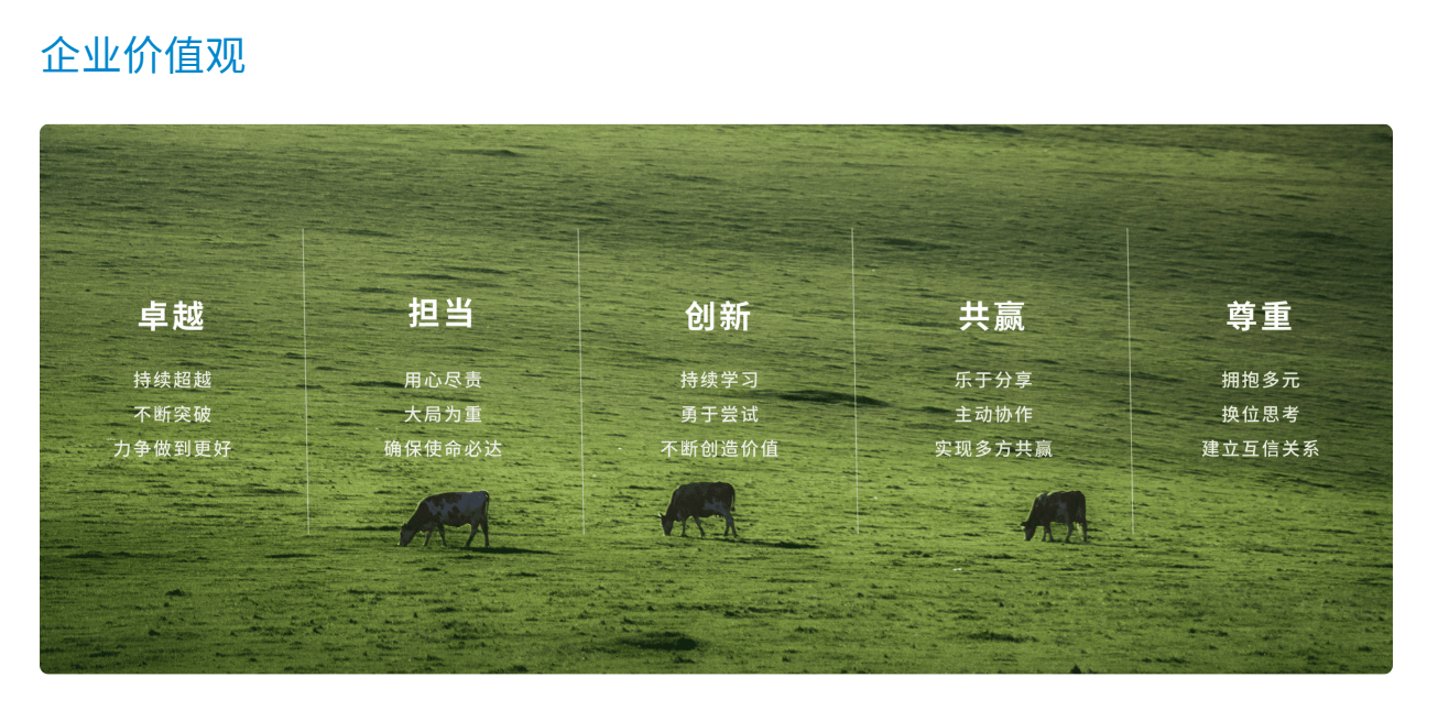 伊利的“生存之道”在于 产业价值共生 ,倡导构建一个多赢的生态系统。这一理念延伸出其“全链共赢”的价值观,即通过全链条的赋能与合作,实现滋养消费者健康、带富农牧民、育强经销商、激活上下游、关爱员工发展以及持续回报股东的共同目标 [10] 。这不仅是其商业成功的基石,更是其社会责任感的体现,通过构建开放、协作的价值链,伊利致力于推动整个行业乃至社会的可持续发展。例如,伊利通过“技术赋能+金融支持+数字转型”驱动全链升级,累计为产业链上下游合作伙伴提供巨额资金支持,并推动合作牧场的智能化改造,从源头保障产品品质并带动区域经济发展。