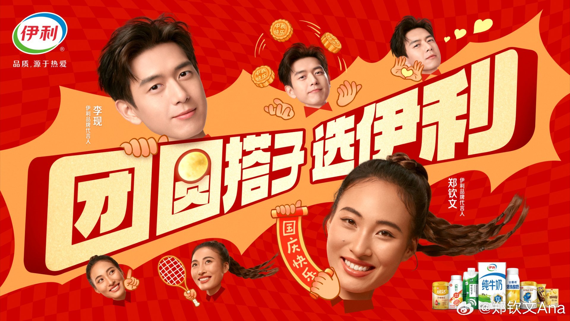 | 李现“团圆搭子选伊利”中秋主题营销 | 2025年9月15日 - 9月20日 | 伊利品牌代言人李现发起#团圆搭子选伊利#话题,携手网球运动员郑钦文推广产品,强调“团圆好搭子”形象,并结合电商平台直播互动。 | [5] |